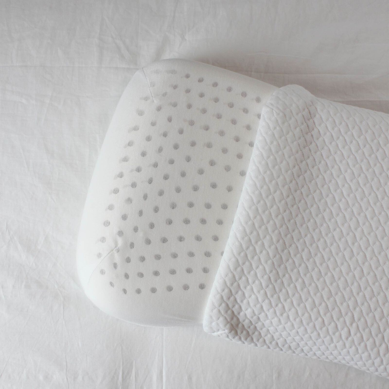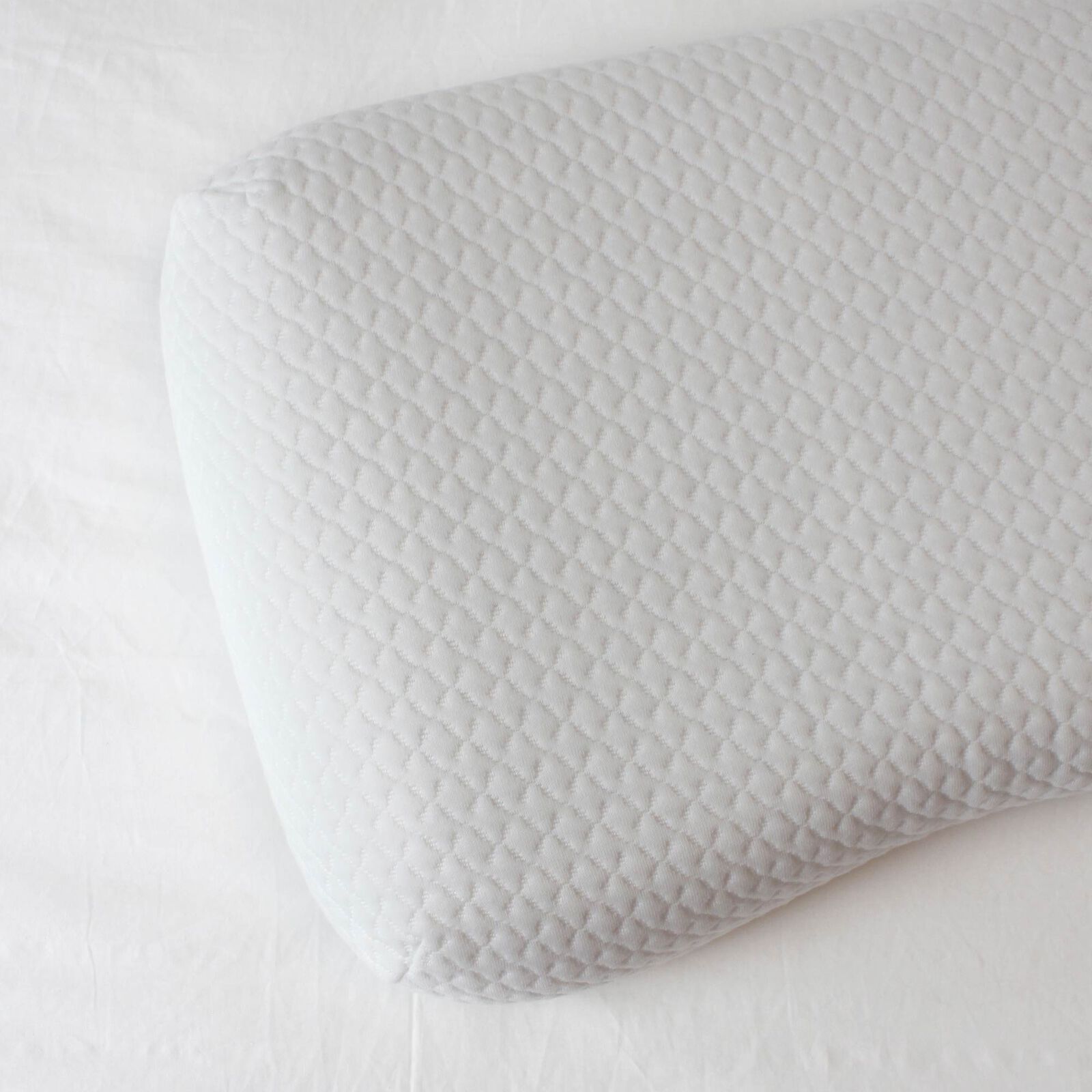 A premium pillow with an ergonomically curved shape that helps align your head, neck, and shoulders. The Curve Pillow is ideal for back sleepers and also for side sleepers who like to wrap their arms around their pillows. Developed for use with adjustable beds, the flat, non-slip design helps keep the pillow in place even when the head of the bed is elevated. Breathable pincore latex provides increased airflow for a naturally cool sleep, while the fitted stretch knit outer cover promotes breathability.